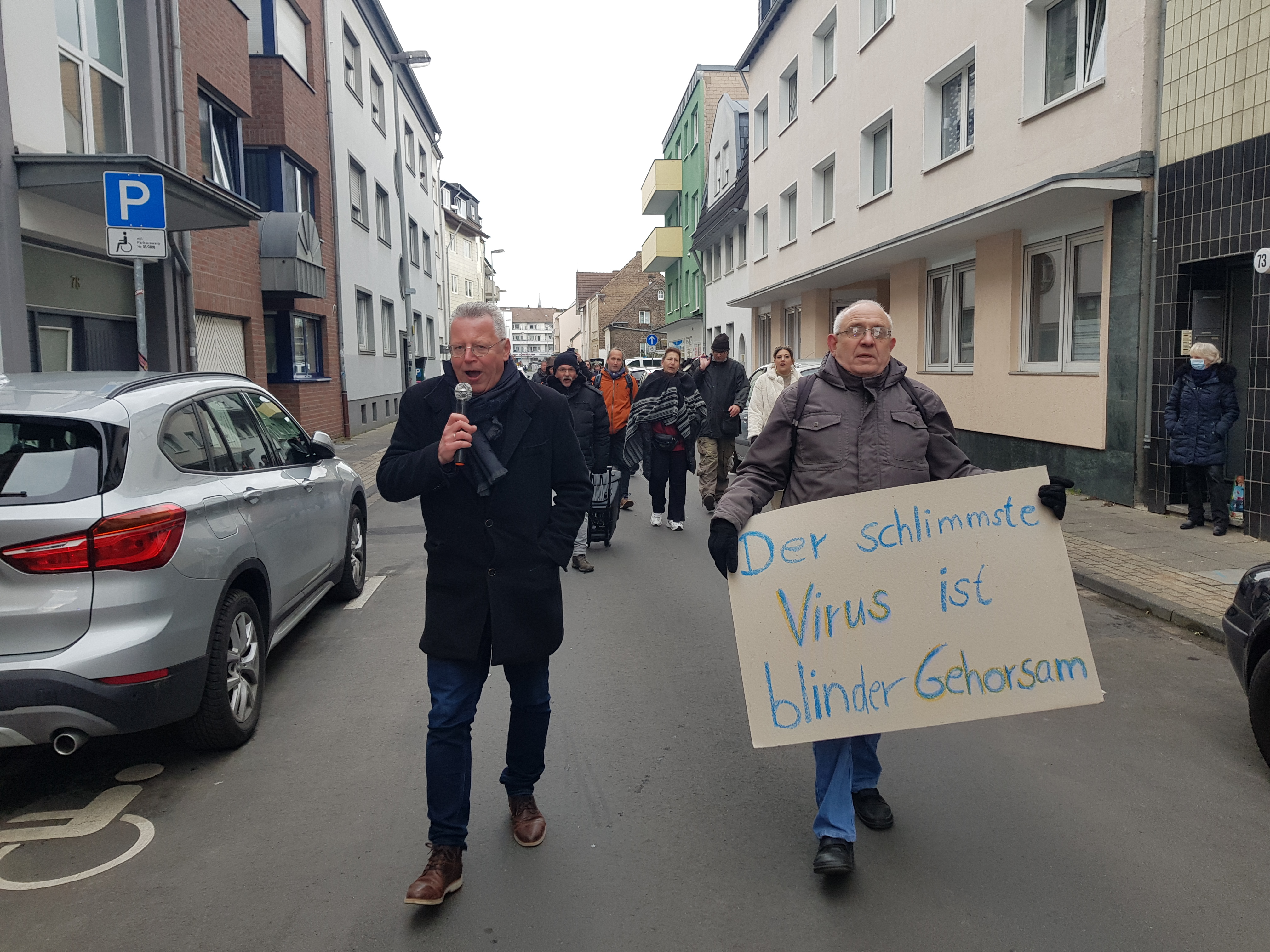 Der anschließende Spaziergang führte uns durch ganz Opladen und sorgte für reichlich Aufmerksamkeit. Es konnte auch immer wieder die Möglichkeit genutzt werden, mit Passanten ins Gespräch zu kommen. Trotz teilweiser unterschiedlicher Auffassungen über die Corona-Politik, ist es wichtig das wir miteinander im Dialog bleiben, nur so funktioniert Demokratie.