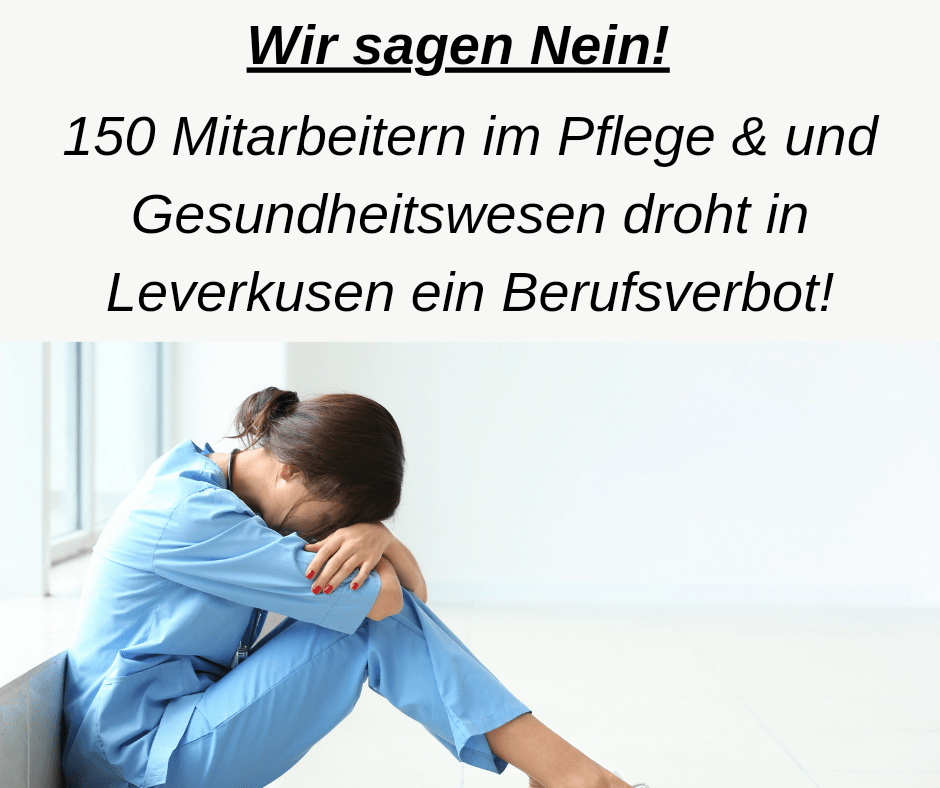 Das Leverkusener Gesundheitsamt arbeitet mit Hochdruck daran langjährige bewährte Mitarbeiter und Mitarbeiterinnen im Gesundheitswesen zu entsorgen! Ungeimpfte Mitarbeiter sollen nach dem einhelligen Willen der politischen Klasse in unserer Stadt mit rechtswidrigen Berufsverboten überzogen werden!