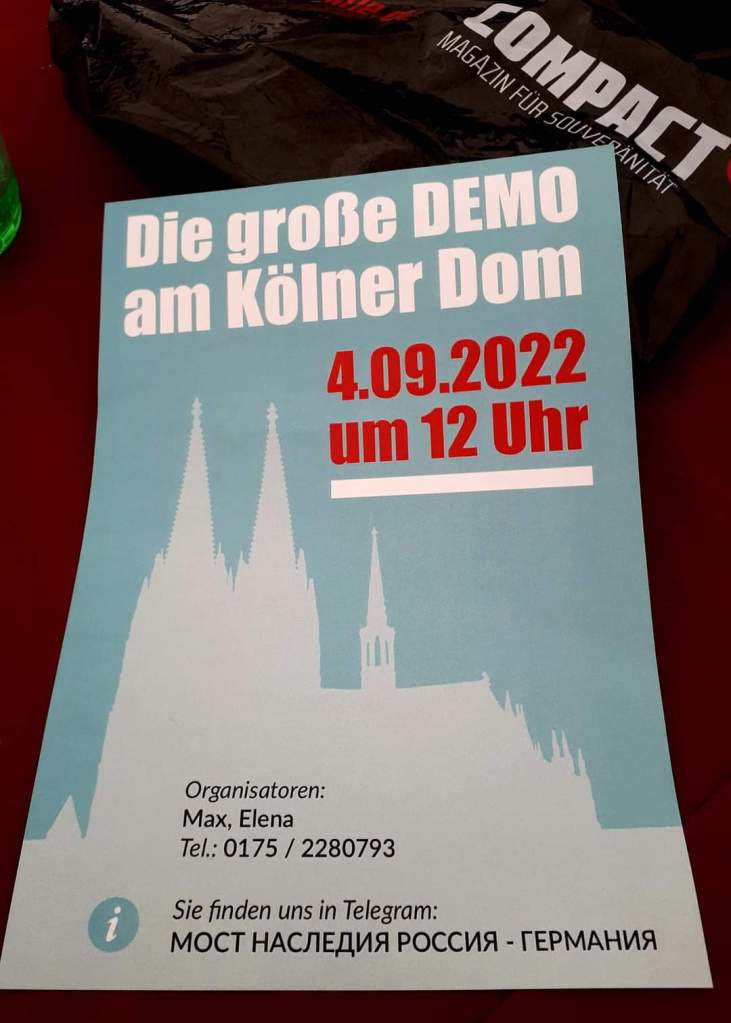 Am Sonntag unterstützen wir die Veranstaltung in Köln die ein Zeichen gegen Sanktionen, Waffenlieferungen, Preistreiberei, Medienhetze und die verfehlte Coronapolitik setzen möchte.